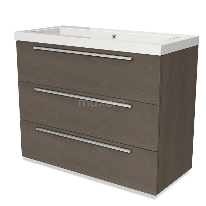 Modulo Waschtische | 100 cm Dunkelbraune Eiche Flach front Mineralguss 3 Schubladen