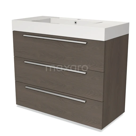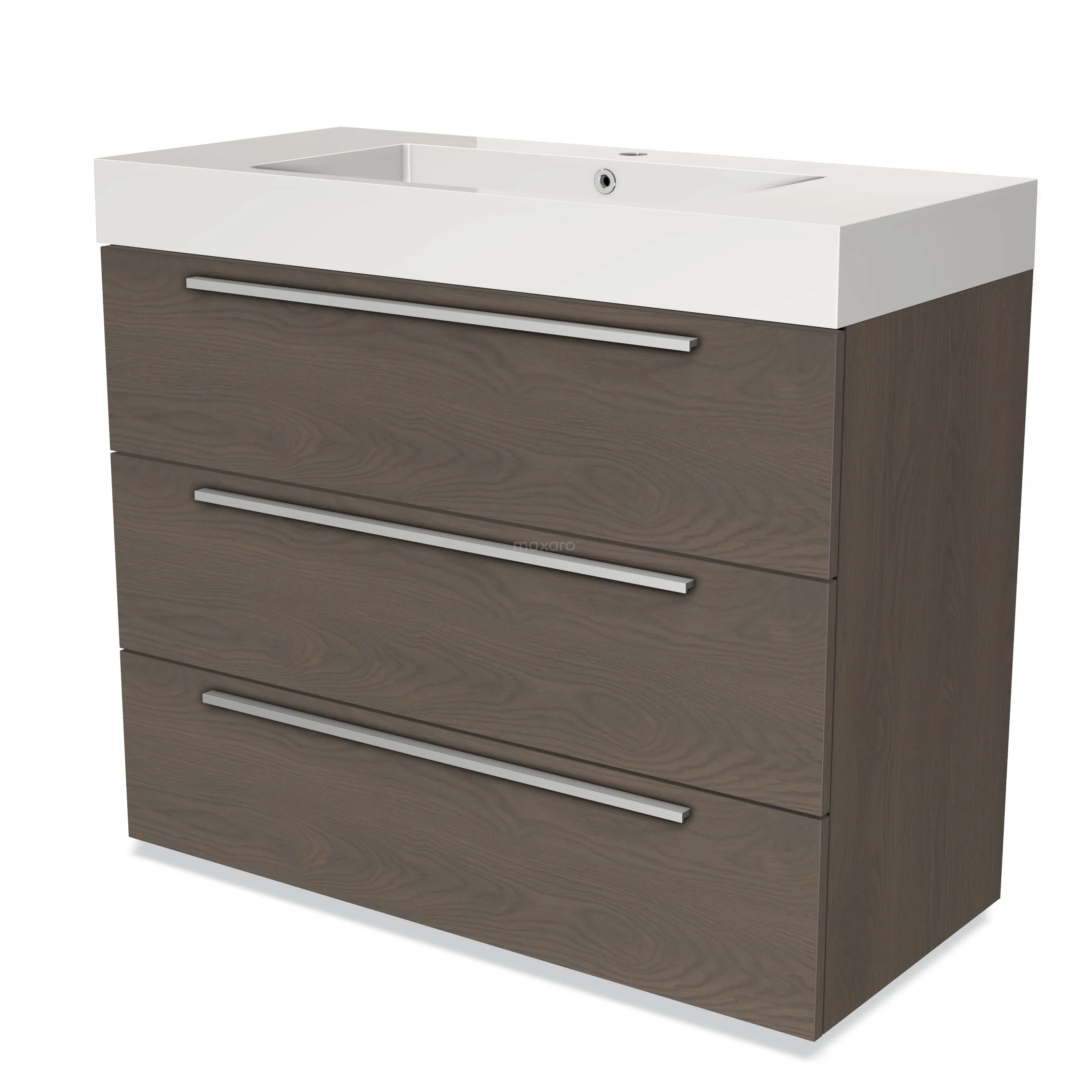 Modulo Waschtische | 100 cm Dunkelbraune Eiche Flach front Mineralguss 3 Schubladen