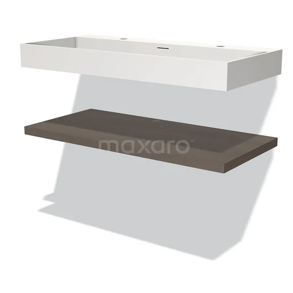Modulo Waschtische | 100 cm Dunkelbraune Eiche front Solid Surface Waschbecken mit Platte