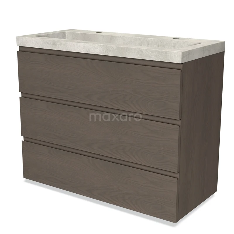 Modulo Waschtische | 100 cm Dunkelbraune Eiche Grifflos front Beton 3 Schubladen