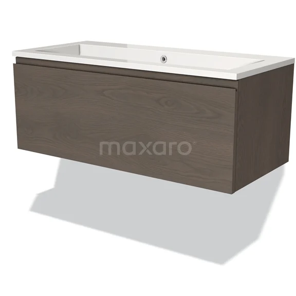 Modulo Waschtische | 100 cm Dunkelbraune Eiche Grifflos front Mineralguss 1 Schublade