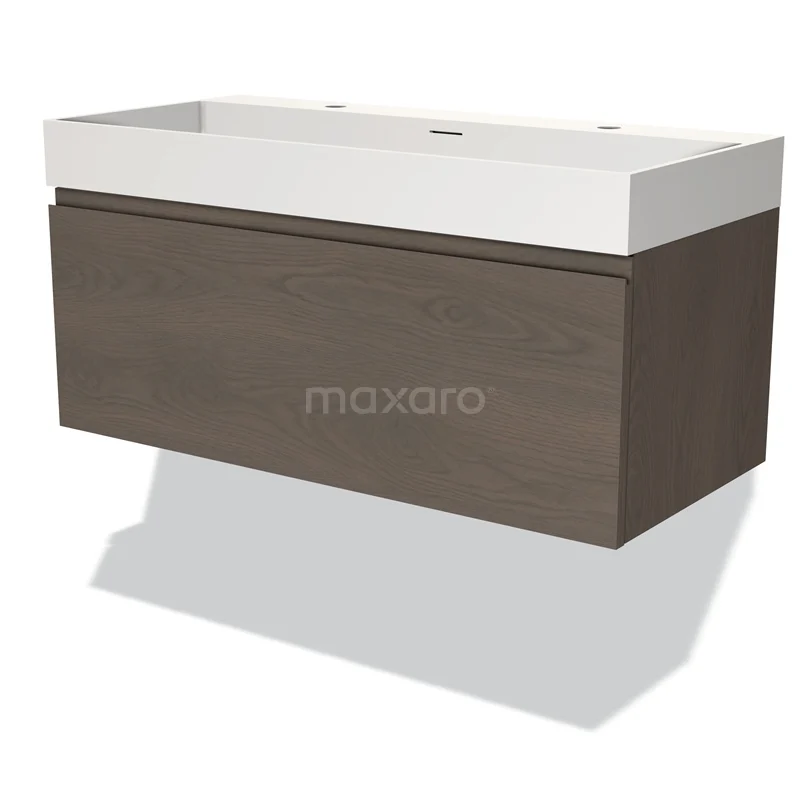 Modulo Waschtische | 100 cm Dunkelbraune Eiche Grifflos front Solid Surface 1 Schublade