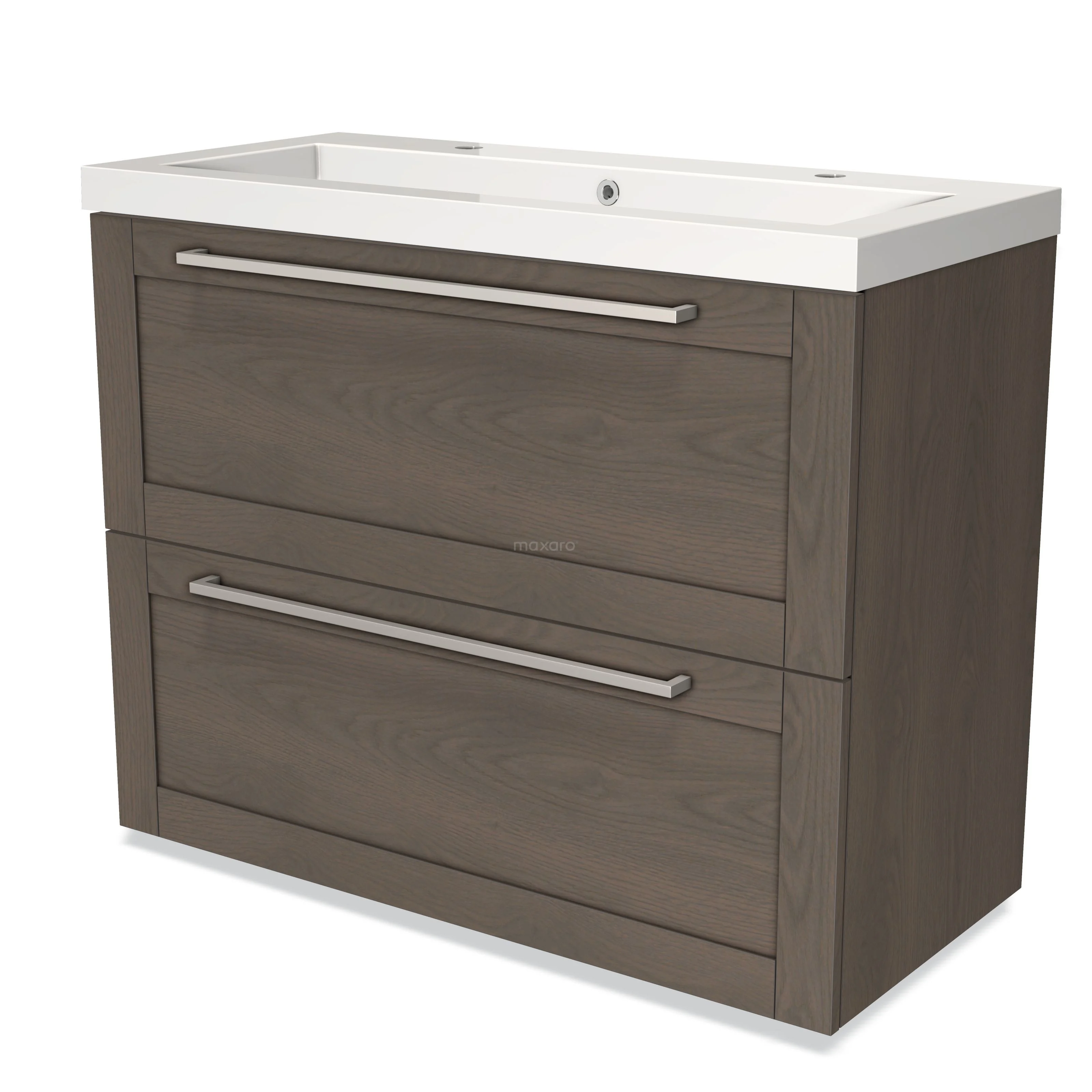 Modulo Waschtische | 100 cm Dunkelbraune Eiche Rahmen front Mineralguss 2 hohe Schubladen übereinanderliegend