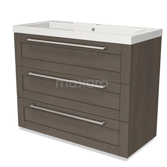 Modulo Waschtische | 100 cm Dunkelbraune Eiche Rahmen front Mineralguss 3 Schubladen