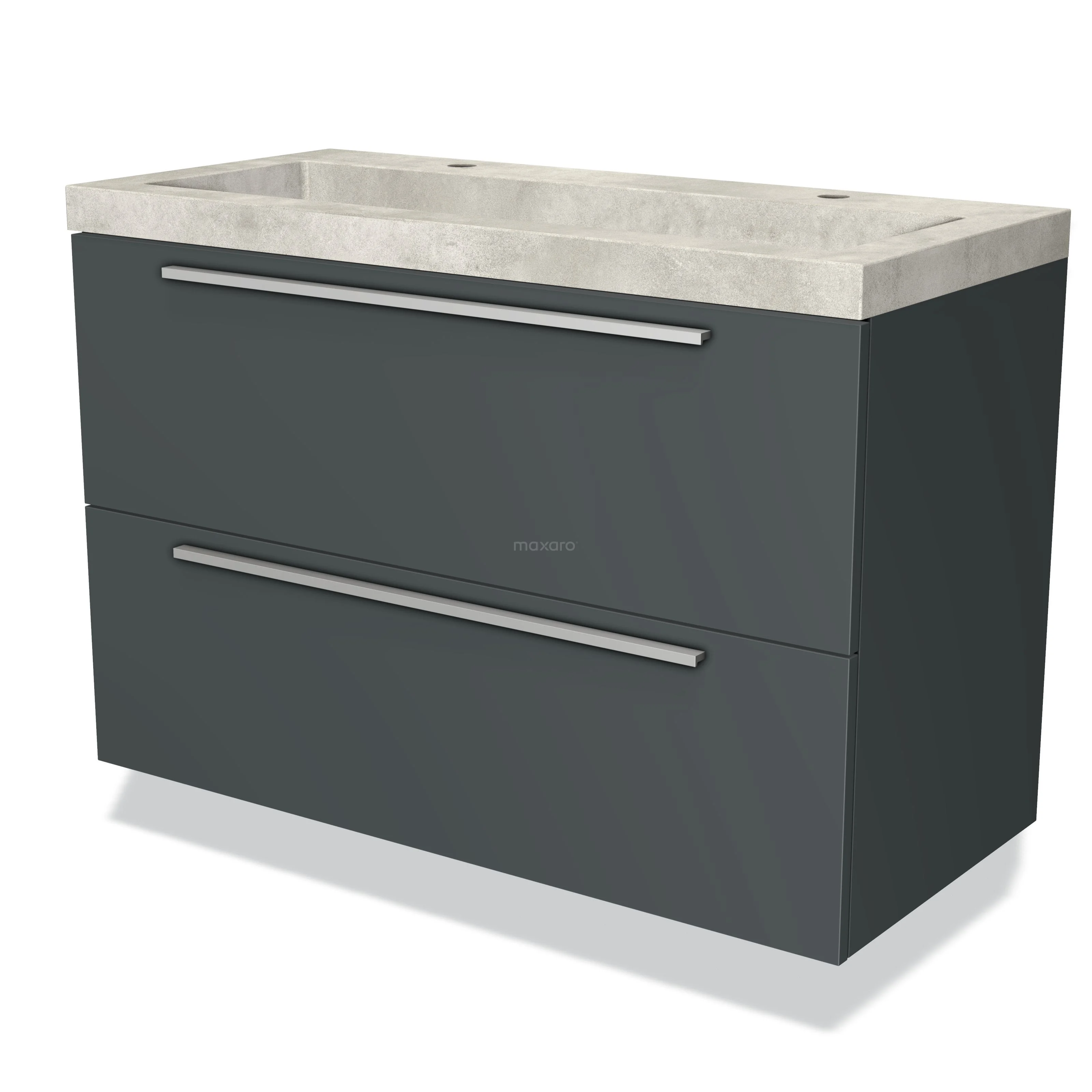 Modulo Waschtische | 100 cm Dunkelgrau Flach front Beton 2 übereinanderliegende Schubladen