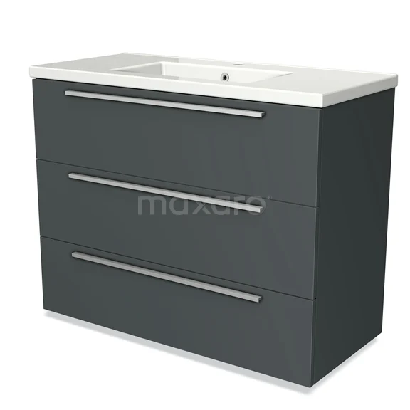 Modulo Waschtische | 100 cm Dunkelgrau Flach front Keramik 3 Schubladen