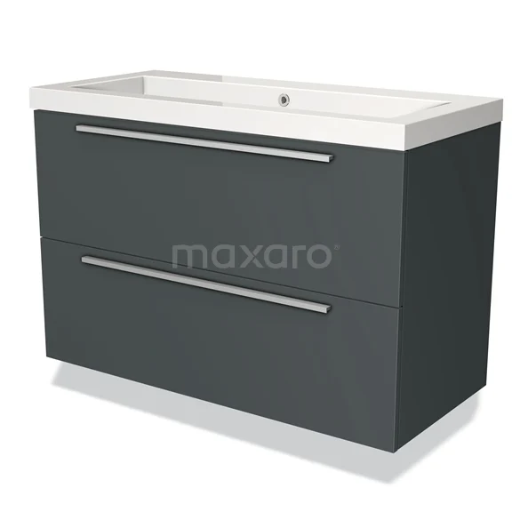 Modulo Waschtische | 100 cm Dunkelgrau Flach front Mineralguss 2 übereinanderliegende Schubladen