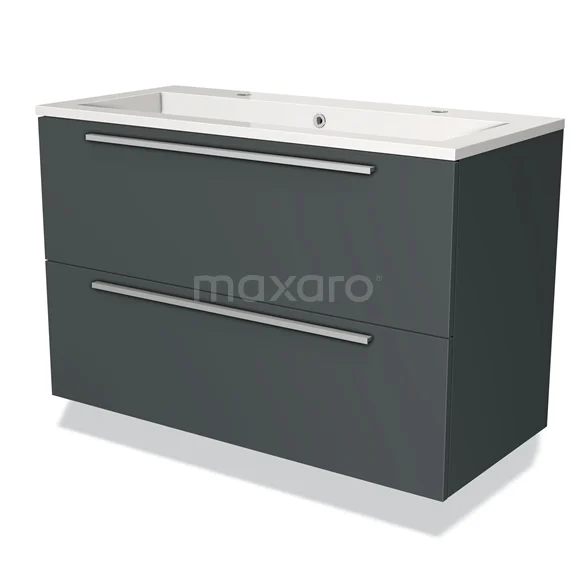 Modulo Waschtische | 100 cm Dunkelgrau Flach front Mineralguss 2 übereinanderliegende Schubladen