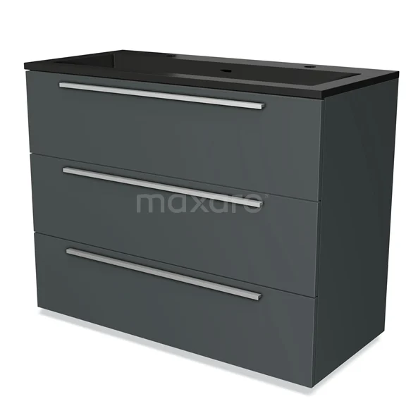 Modulo Waschtische | 100 cm Dunkelgrau Flach front Quarz 3 Schubladen