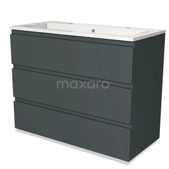 Modulo Waschtische | 100 cm Dunkelgrau Grifflos front Mineralguss 3 Schubladen