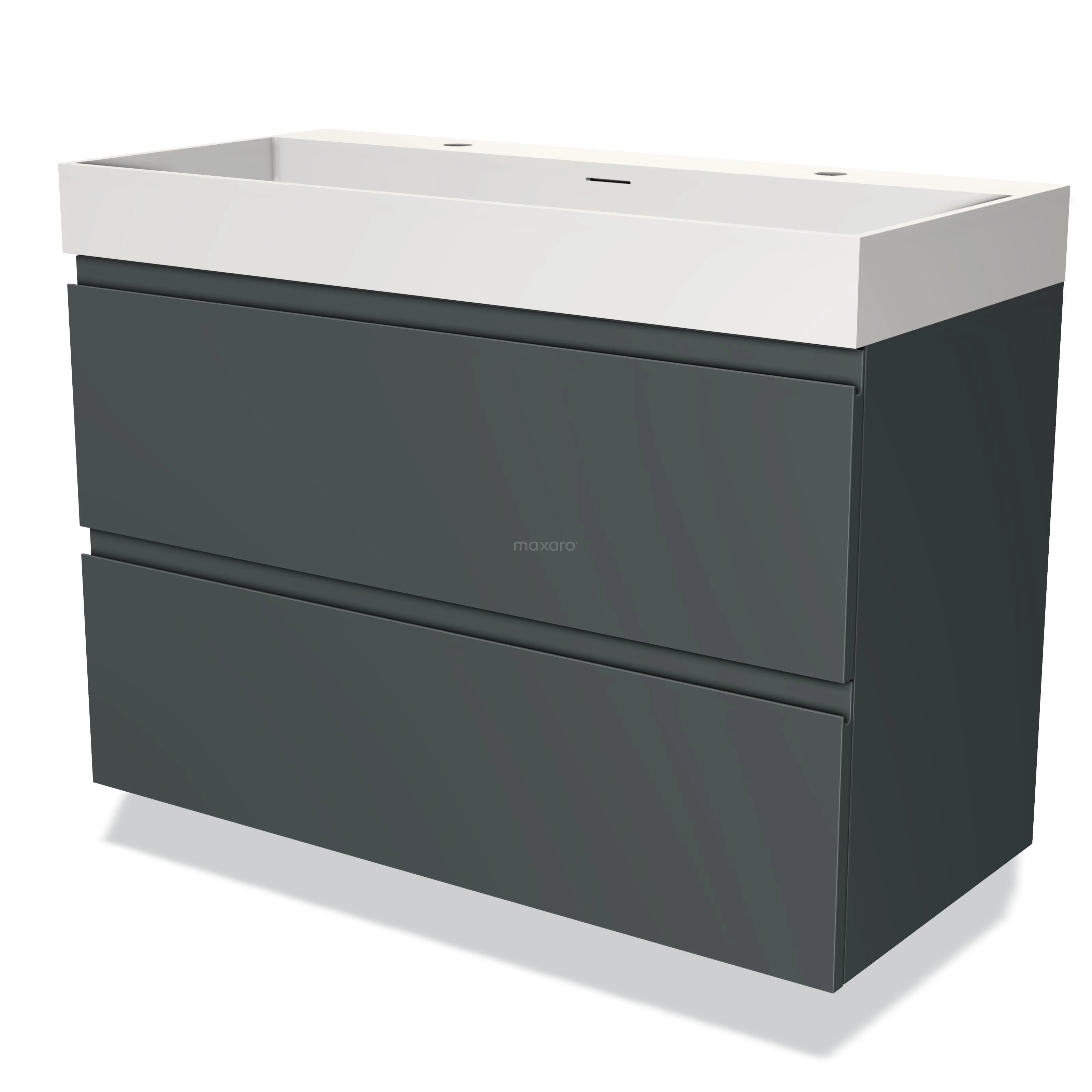 Modulo Waschtische | 100 cm Dunkelgrau Grifflos front Solid Surface 2 übereinanderliegende Schubladen
