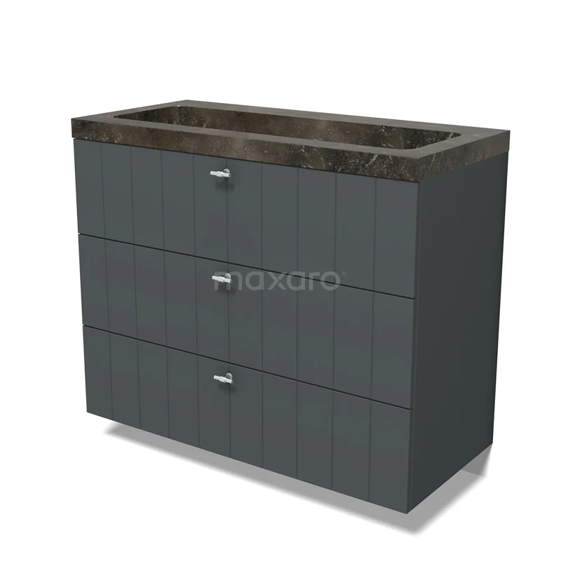 Modulo Waschtische | 100 cm Dunkelgrau Lamelle front Naturstein 3 Schubladen