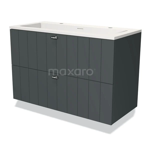 Modulo Waschtische | 100 cm Dunkelgrau Lamelle front Solid Surface 2 übereinanderliegende Schubladen