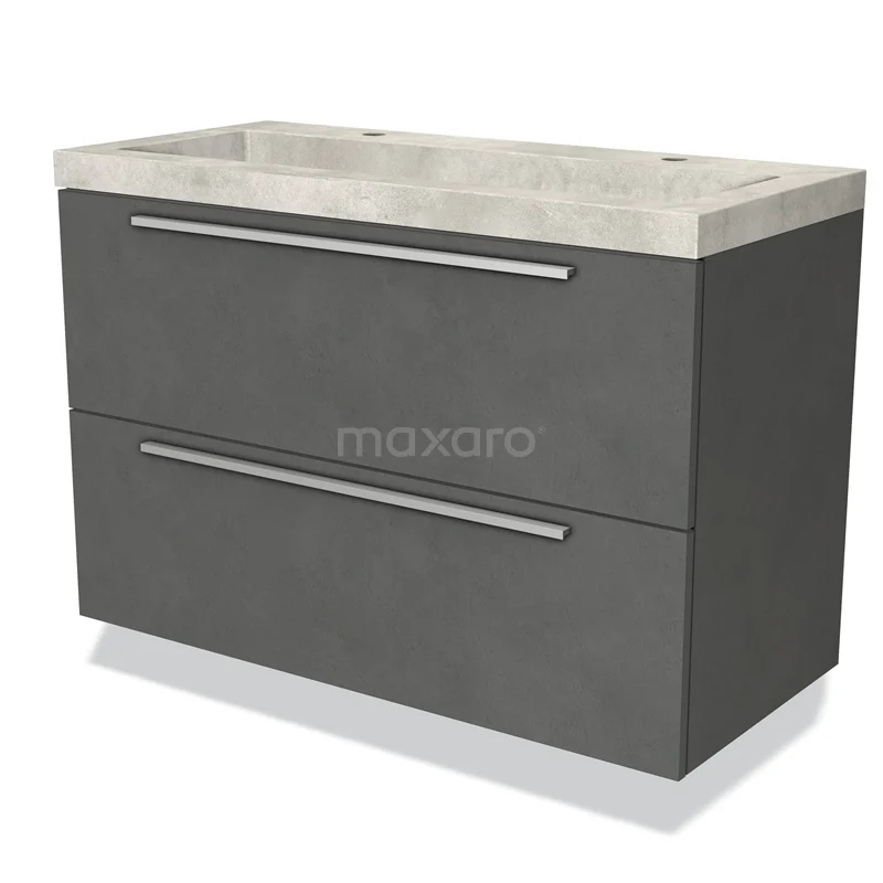 Modulo Waschtische | 100 cm Dunkelgrauer Beton Flach front Beton 2 übereinanderliegende Schubladen