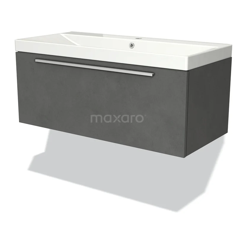 Modulo Waschtische | 100 cm Dunkelgrauer Beton Flach front Keramik 1 Schublade