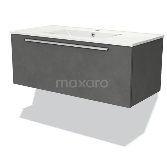 Modulo Waschtische | 100 cm Dunkelgrauer Beton Flach front Keramik 1 Schublade
