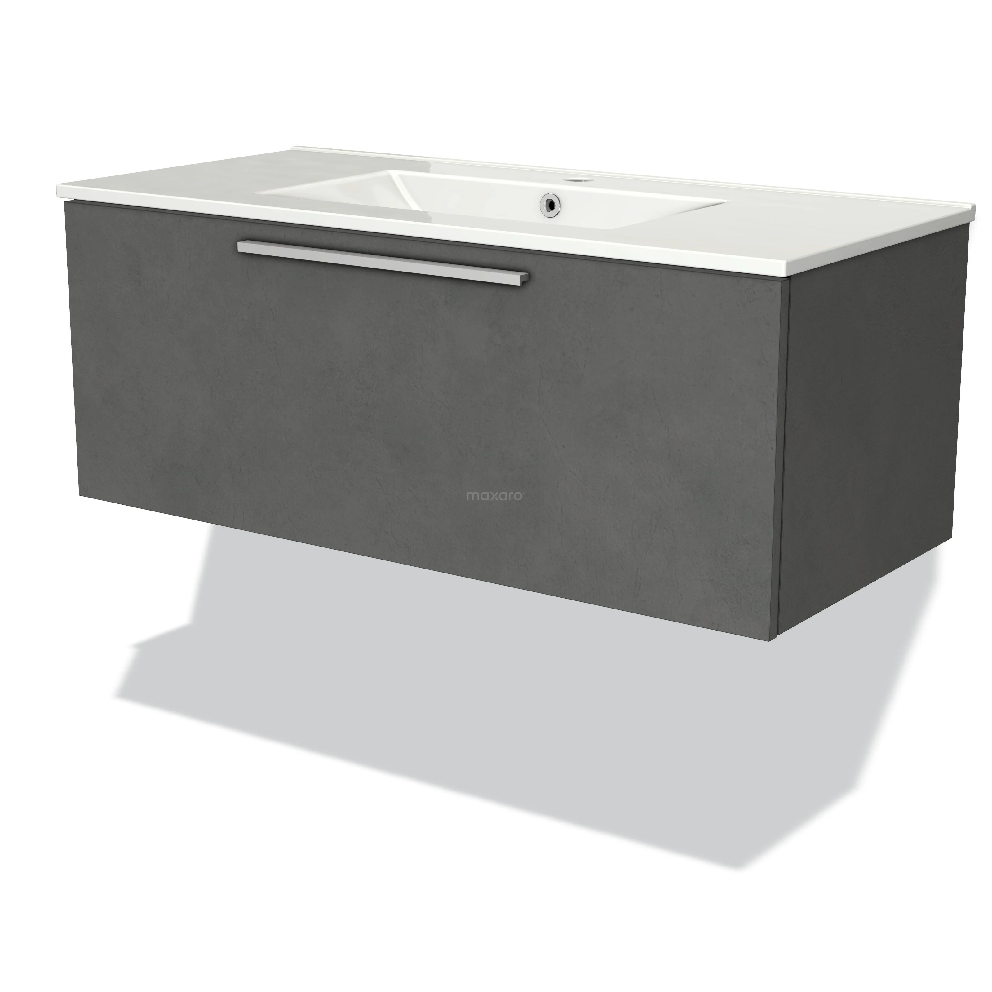 Modulo Waschtische | 100 cm Dunkelgrauer Beton Flach front Keramik 1 Schublade