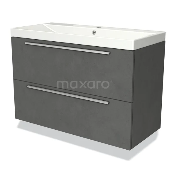 Modulo Waschtische | 100 cm Dunkelgrauer Beton Flach front Keramik 2 übereinanderliegende Schubladen