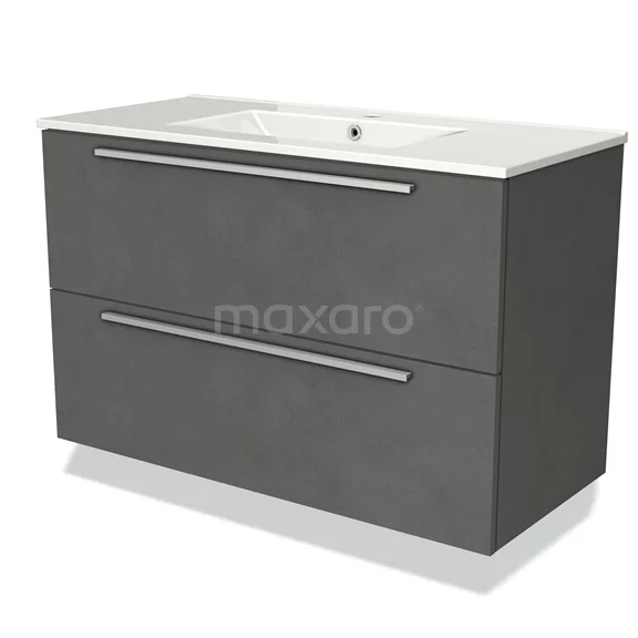 Modulo Waschtische | 100 cm Dunkelgrauer Beton Flach front Keramik 2 übereinanderliegende Schubladen