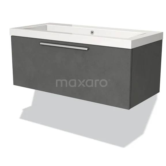 Modulo Waschtische | 100 cm Dunkelgrauer Beton Flach front Mineralguss 1 Schublade