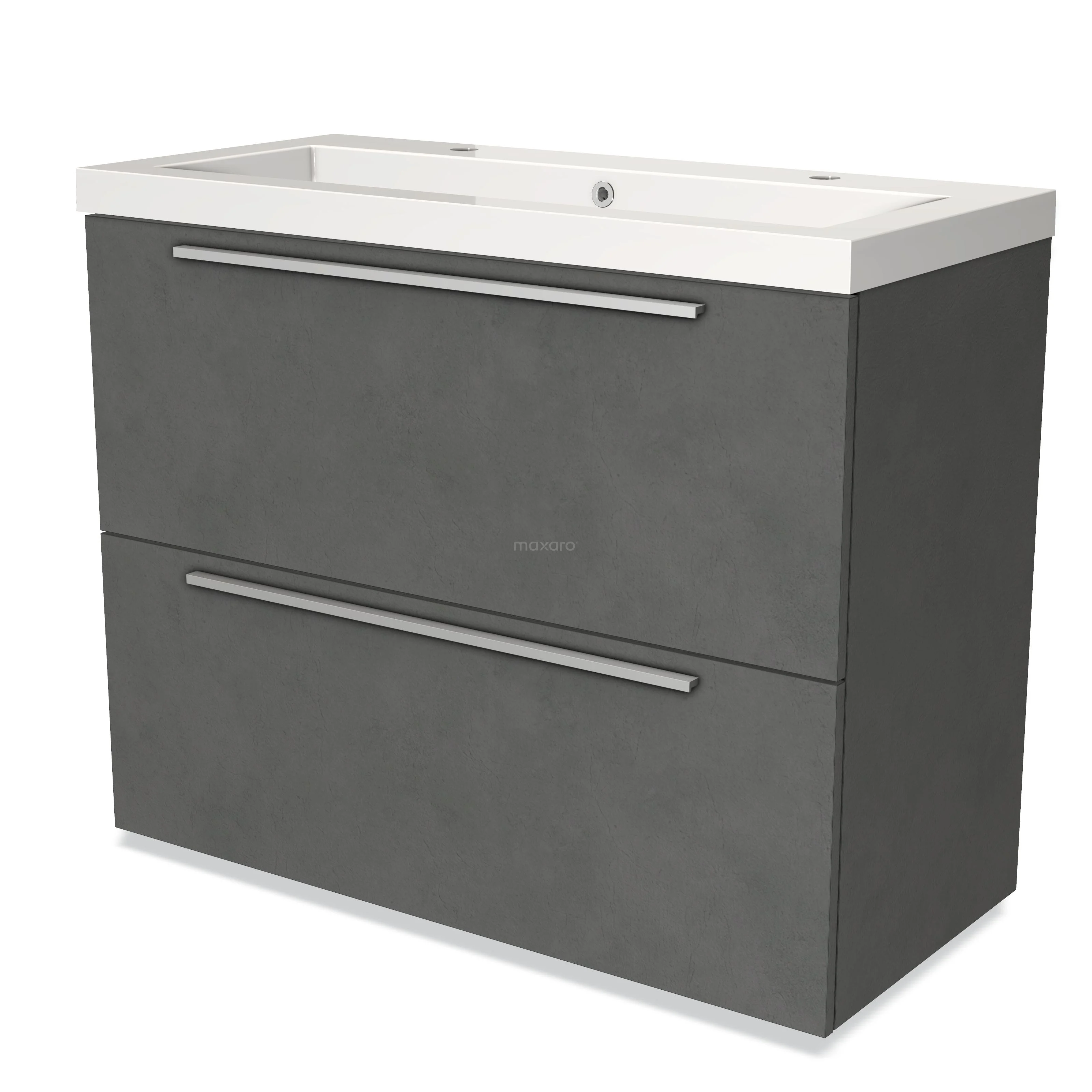Modulo Waschtische | 100 cm Dunkelgrauer Beton Flach front Mineralguss 2 hohe Schubladen übereinanderliegend
