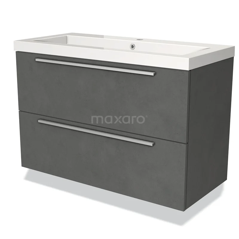 Modulo Waschtische | 100 cm Dunkelgrauer Beton Flach front Mineralguss 2 übereinanderliegende Schubladen