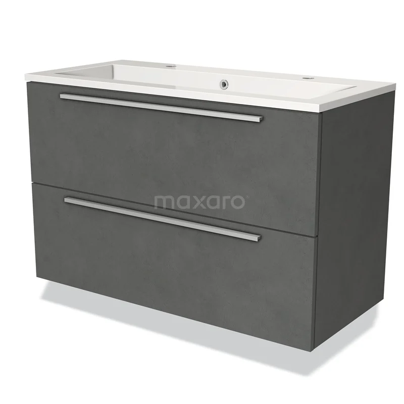 Modulo Waschtische | 100 cm Dunkelgrauer Beton Flach front Mineralguss 2 übereinanderliegende Schubladen