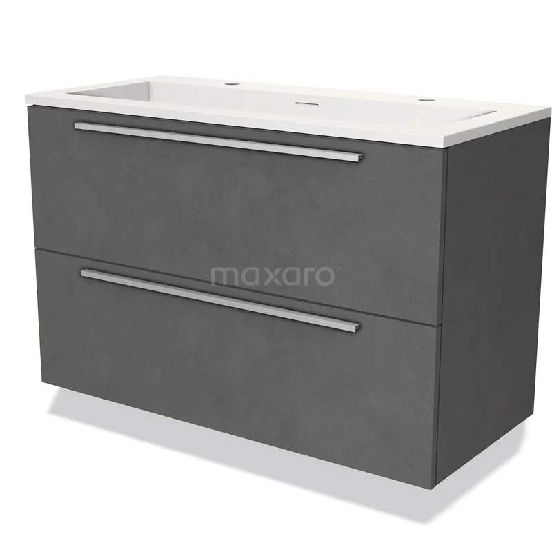 Modulo Waschtische | 100 cm Dunkelgrauer Beton Flach front Solid Surface 2 übereinanderliegende Schubladen