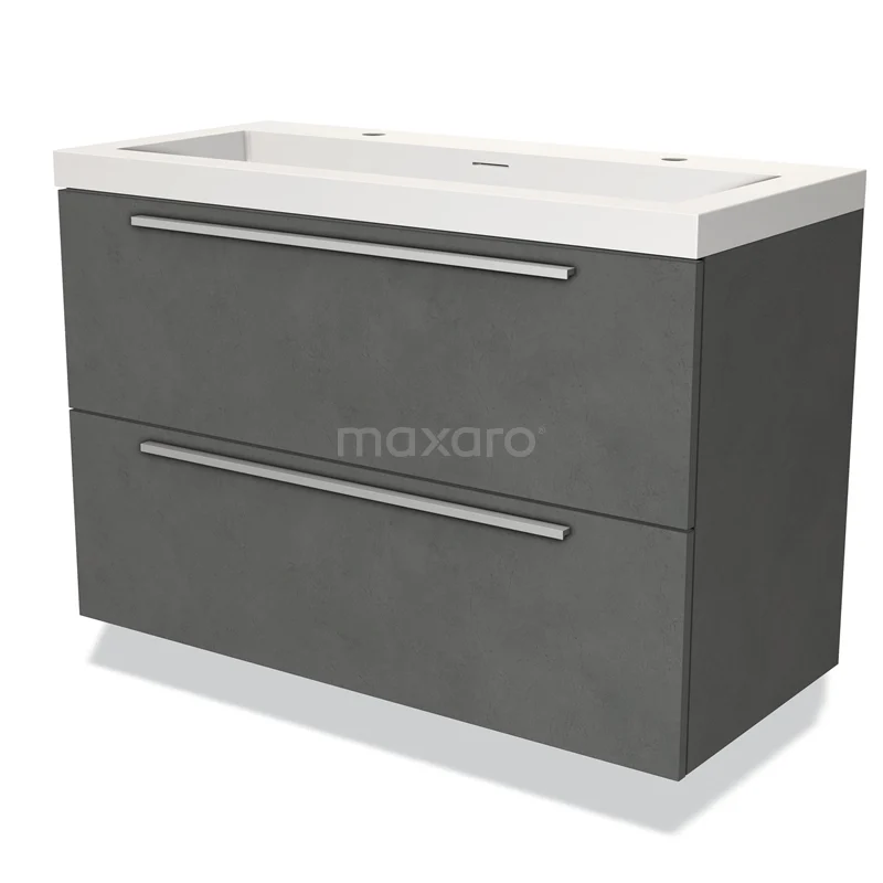 Modulo Waschtische | 100 cm Dunkelgrauer Beton Flach front Solid Surface 2 übereinanderliegende Schubladen