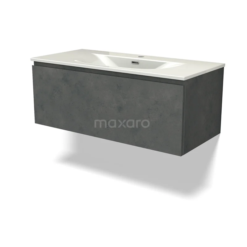 Modulo Waschtische | 100 cm Dunkelgrauer Beton Grifflos front Keramik 1 Schublade