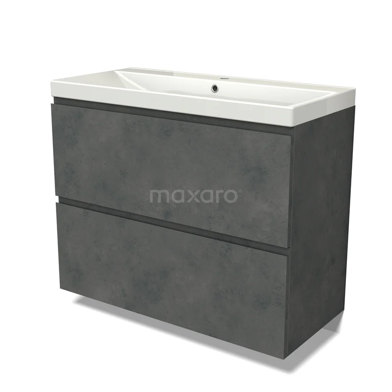 Modulo Waschtische | 100 cm Dunkelgrauer Beton Grifflos front Keramik 2 hohe Schubladen übereinanderliegend