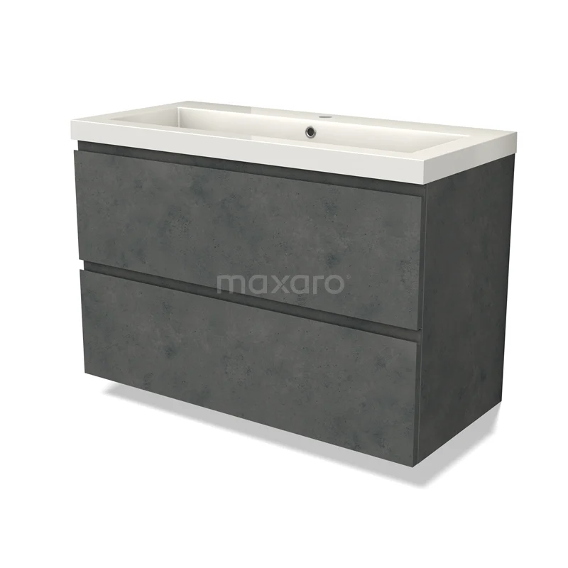 Modulo Waschtische | 100 cm Dunkelgrauer Beton Grifflos front Mineralguss 2 übereinanderliegende Schubladen