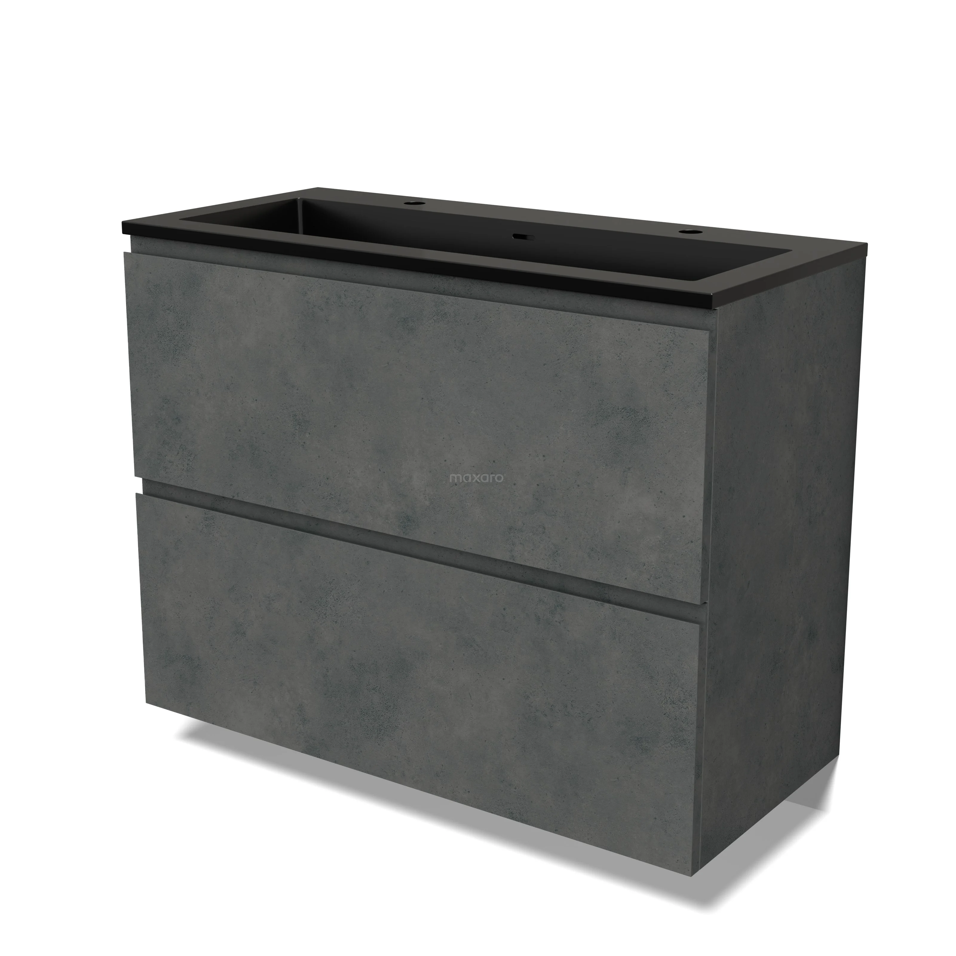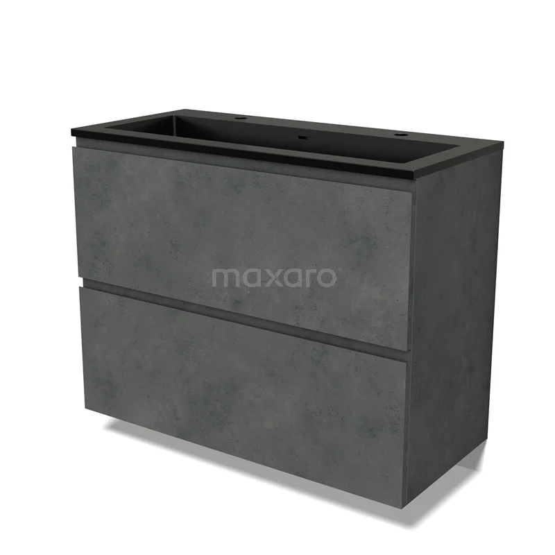 Modulo Waschtische | 100 cm Dunkelgrauer Beton Grifflos front Quarz 2 hohe Schubladen übereinanderliegend