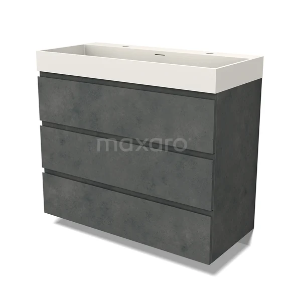 Modulo Waschtische | 100 cm Dunkelgrauer Beton Grifflos front Solid Surface 3 Schubladen