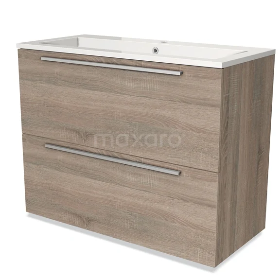 Modulo Waschtische | 100 cm Eiche Flach front Mineralguss 2 hohe Schubladen übereinanderliegend