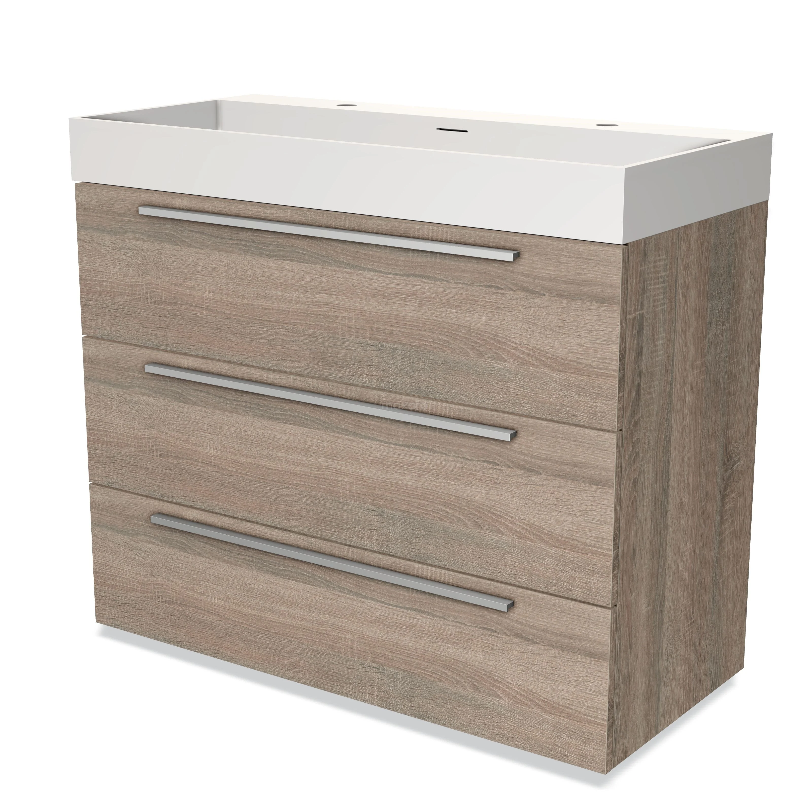 Modulo Waschtische | 100 cm Eiche Flach front Solid Surface 3 Schubladen