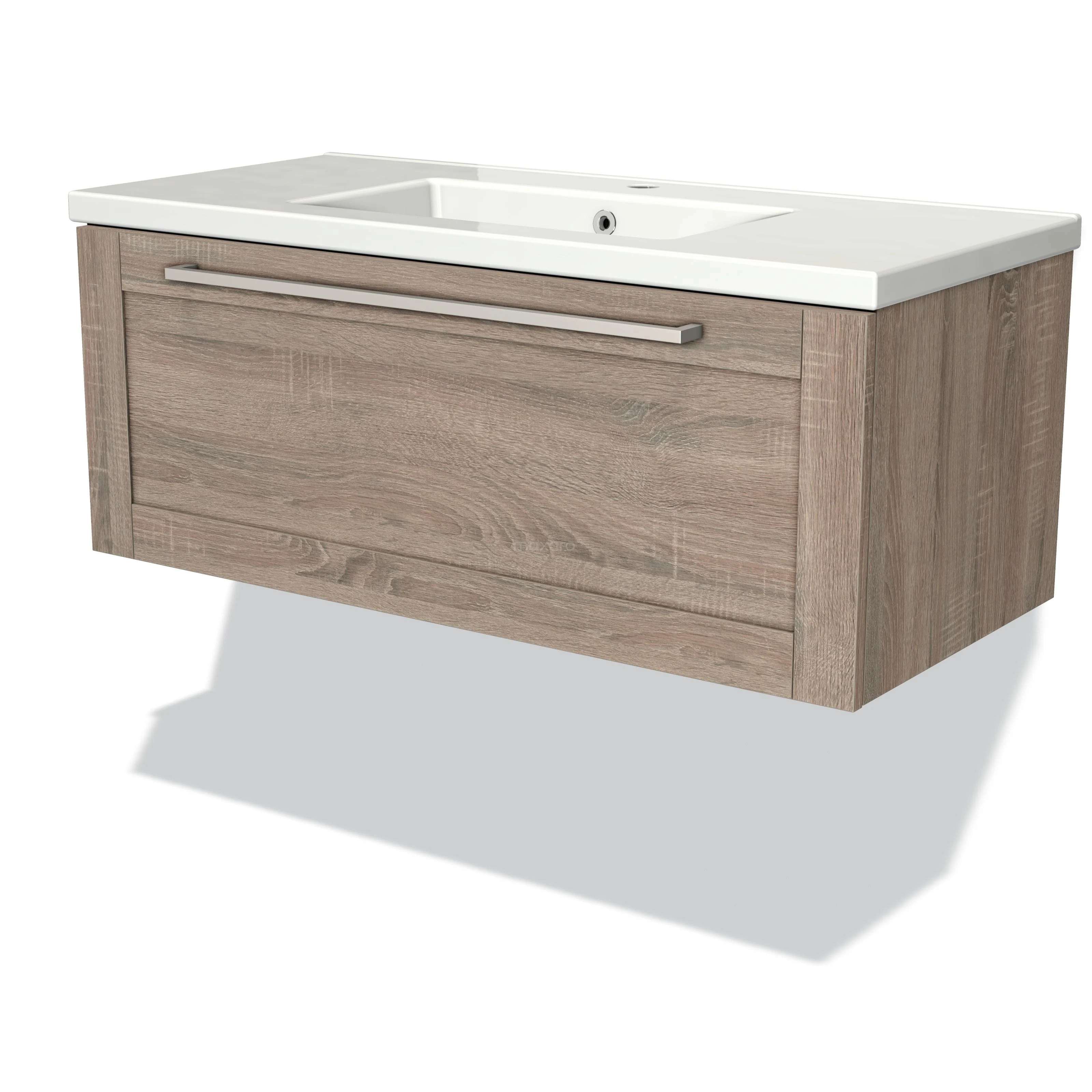 Modulo Waschtische | 100 cm Eiche Rahmen front Keramik 1 Schublade