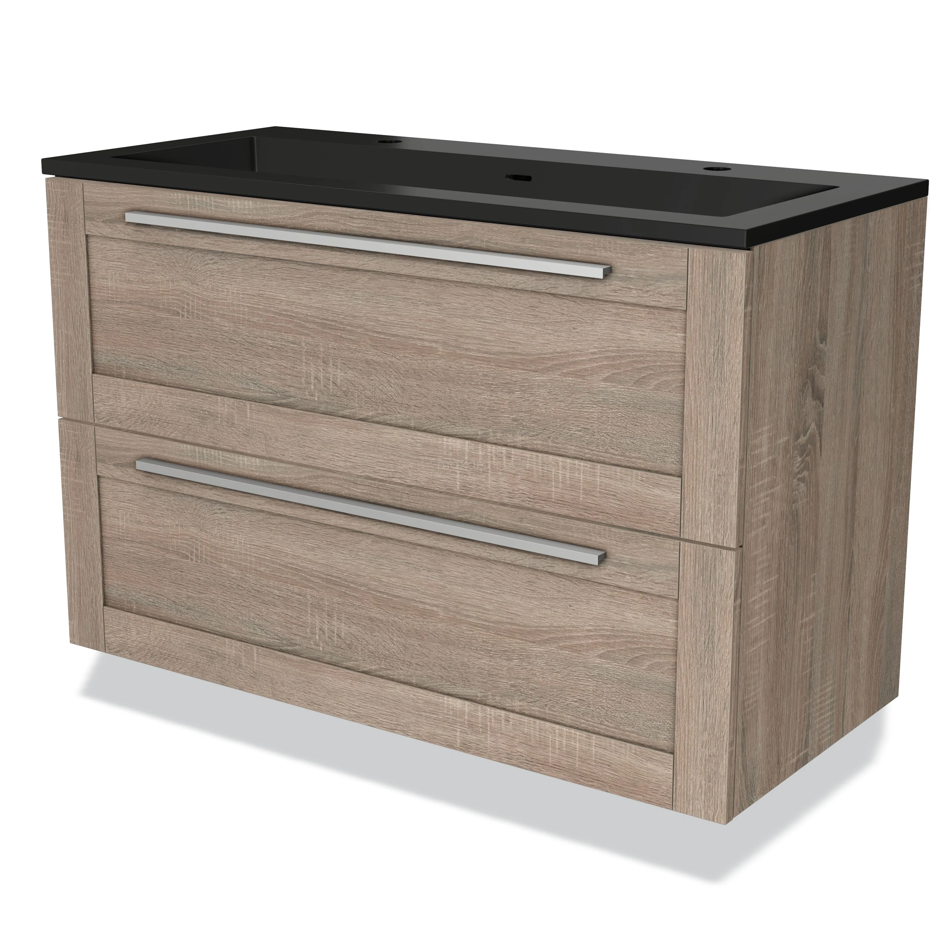 Modulo Waschtische | 100 cm Eiche Rahmen front Quarz 2 übereinanderliegende Schubladen