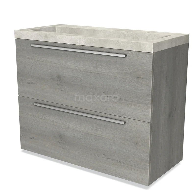 Modulo Waschtische | 100 cm Graue Eiche Flach front Beton 2 hohe Schubladen übereinanderliegend