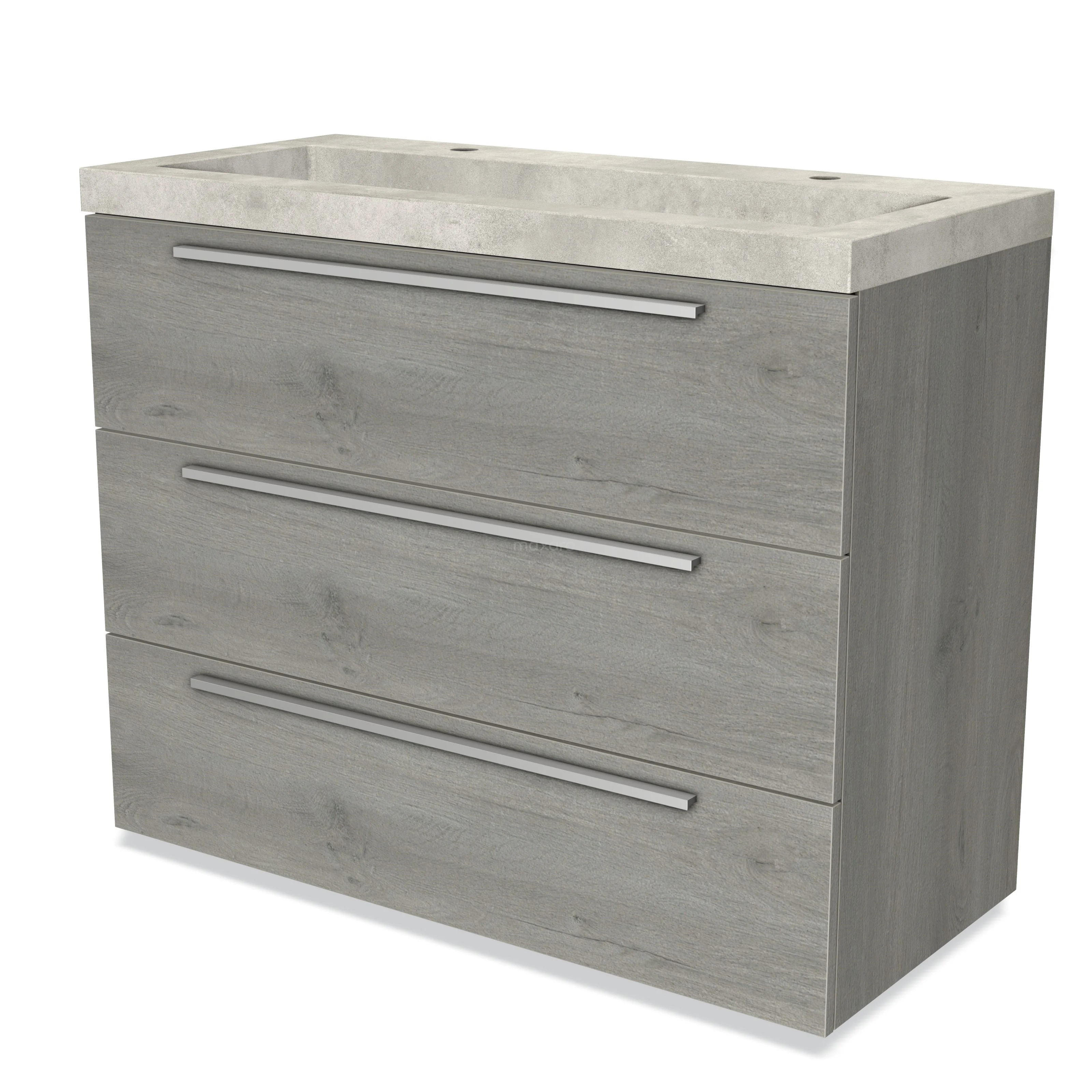 Modulo Waschtische | 100 cm Graue Eiche Flach front Beton 3 Schubladen
