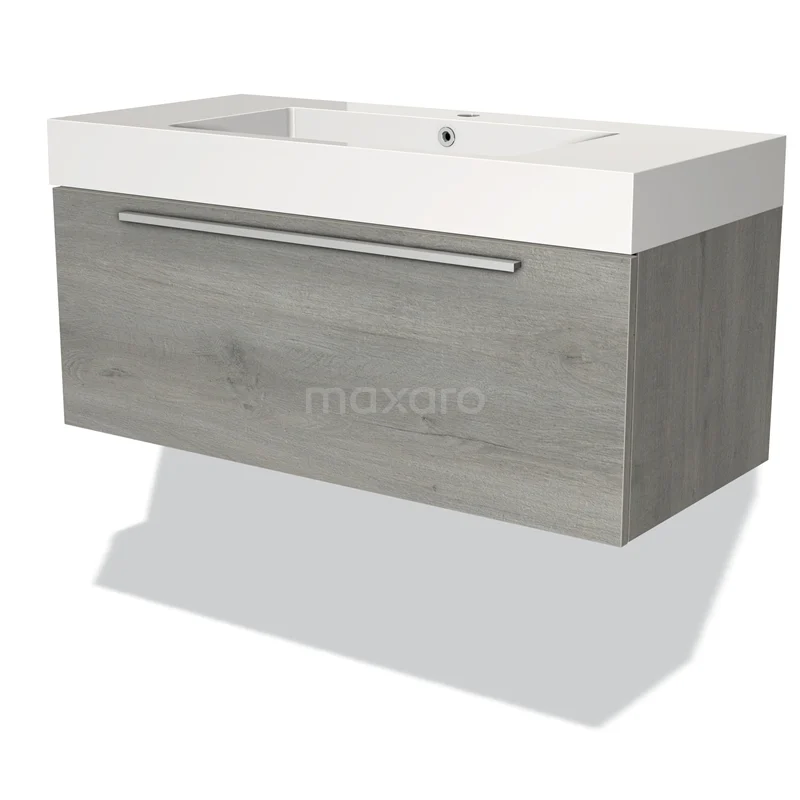 Modulo Waschtische | 100 cm Graue Eiche Flach front Mineralguss 1 Schublade