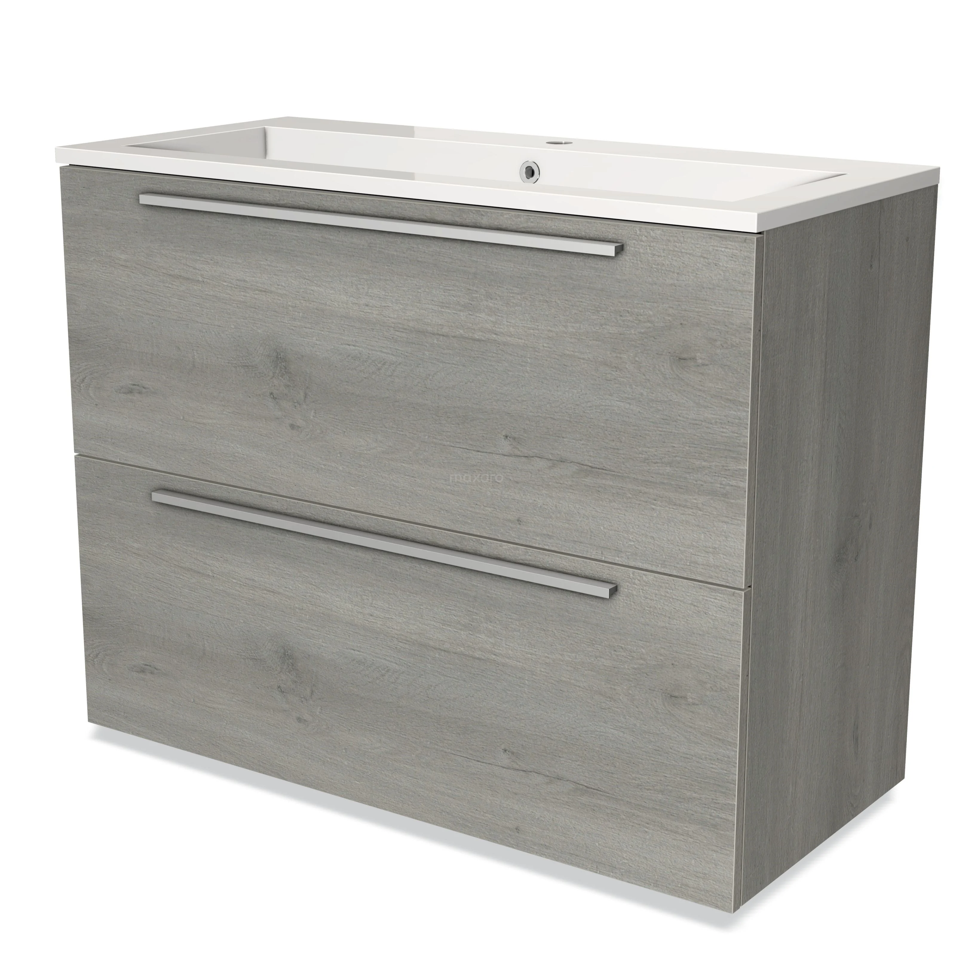 Modulo Waschtische | 100 cm Graue Eiche Flach front Mineralguss 2 hohe Schubladen übereinanderliegend