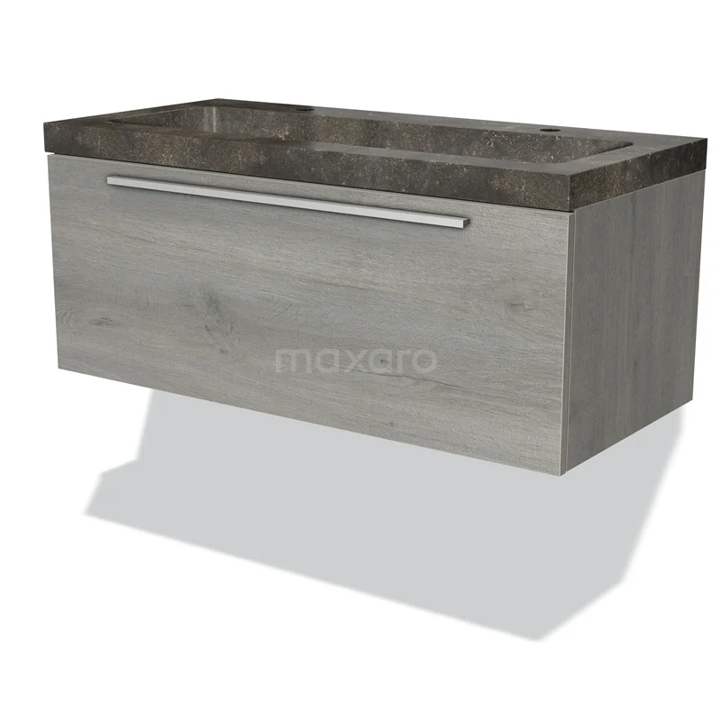Modulo Waschtische | 100 cm Graue Eiche Flach front Naturstein 1 Schublade