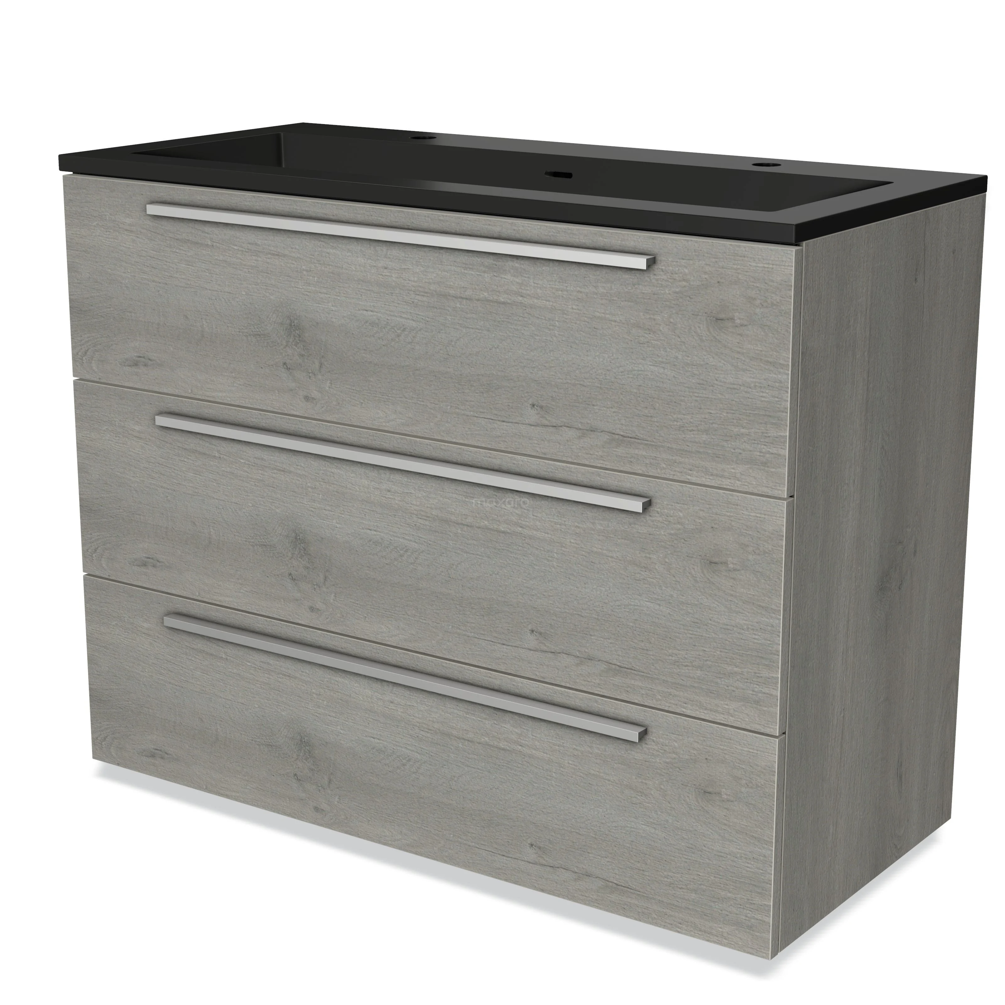 Modulo Waschtische | 100 cm Graue Eiche Flach front Quarz 3 Schubladen