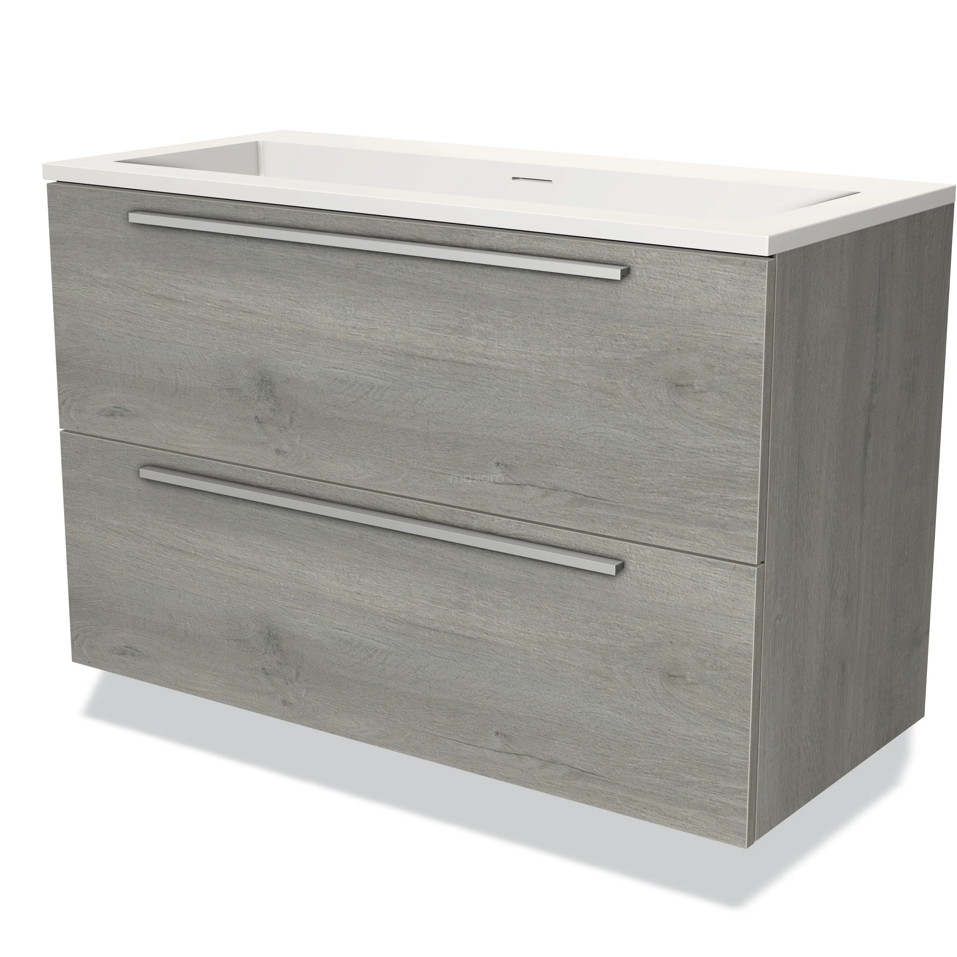 Modulo Waschtische | 100 cm Graue Eiche Flach front Solid Surface 2 übereinanderliegende Schubladen