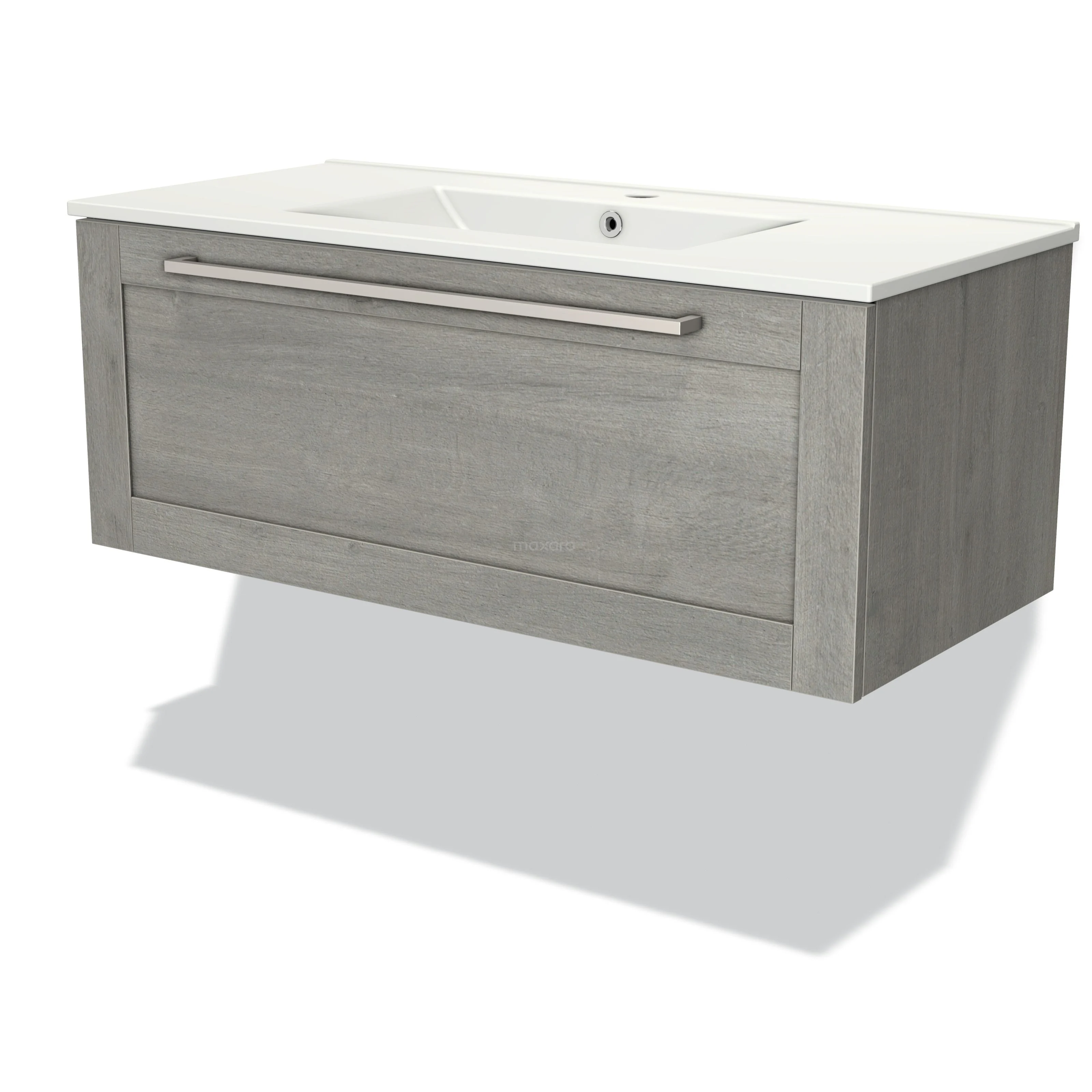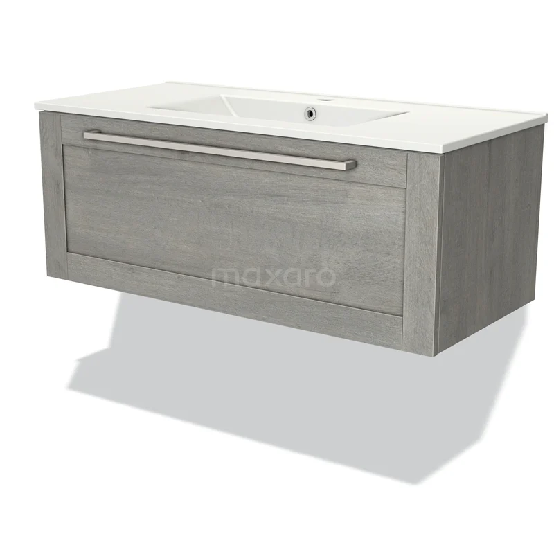 Modulo Waschtische | 100 cm Graue Eiche Rahmen front Keramik 1 Schublade