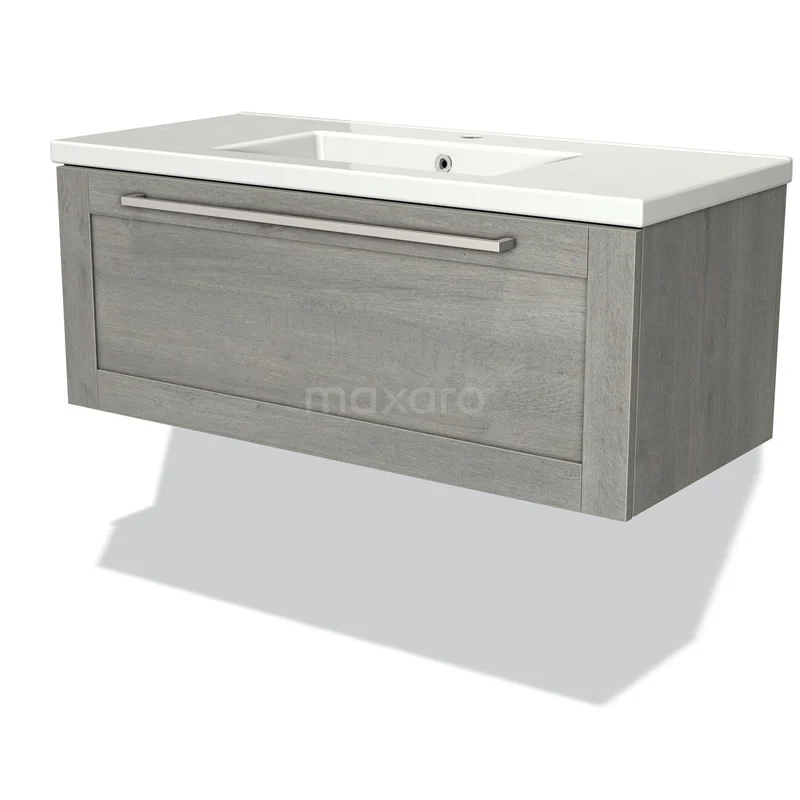Modulo Waschtische | 100 cm Graue Eiche Rahmen front Keramik 1 Schublade