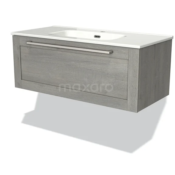Modulo Waschtische | 100 cm Graue Eiche Rahmen front Keramik 1 Schublade