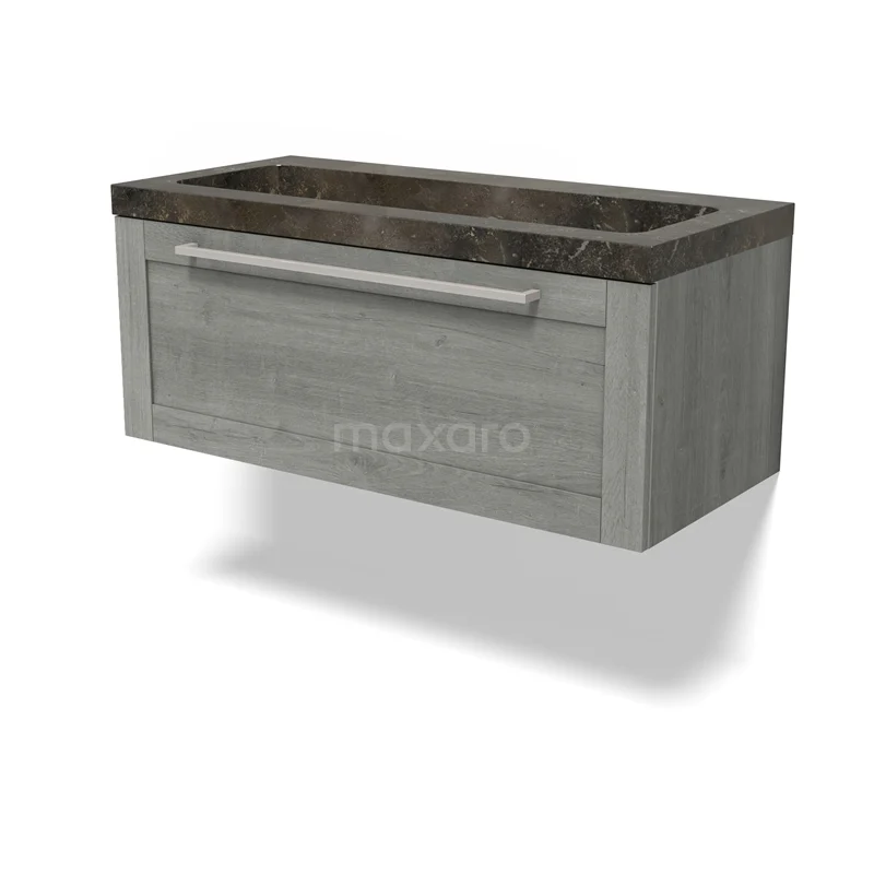Modulo Waschtische | 100 cm Graue Eiche Rahmen front Naturstein 1 Schublade