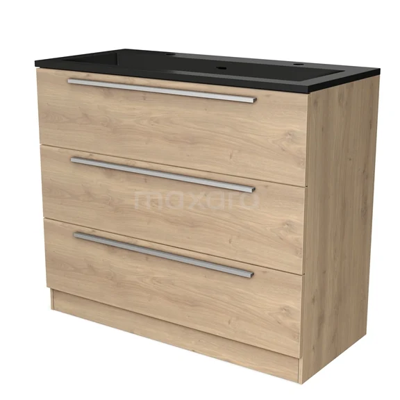 Modulo Waschtische | 100 cm Hellbraune Eiche Flach front Quarz 3 stehende Schubladen